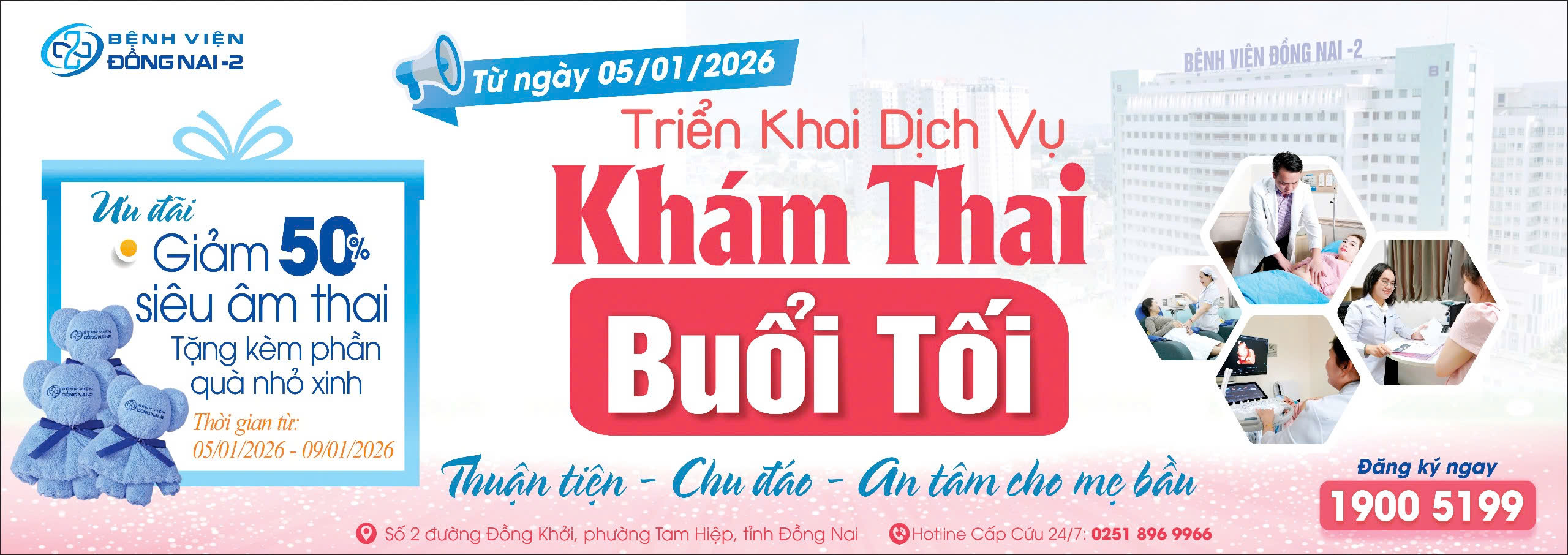 Khám thai buổi tối tại Bệnh viện Đồng Nai -2 giúp mẹ chủ động thời gian, an tâm chăm sóc sức khỏe cho mẹ và bé.