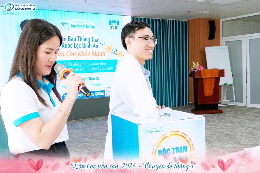 Sáng ngày 31/01/2026, trong không khí rộn ràng của những ngày cận Tết, Bệnh viện Đồng Nai -2 đã tổ chức thành công Lớp học Tiền sản tháng 1 với chủ đề đặc biệt: “MẸ BẦU THÔNG THÁI RƯỚC LỘC BÌNH AN – ĐÓN CON KHỎE MẠNH”. Chương trình đã thu hút sự tham gia đông đảo của các cặp đôi đang chuẩn bị chào đón thiên thần nhỏ.