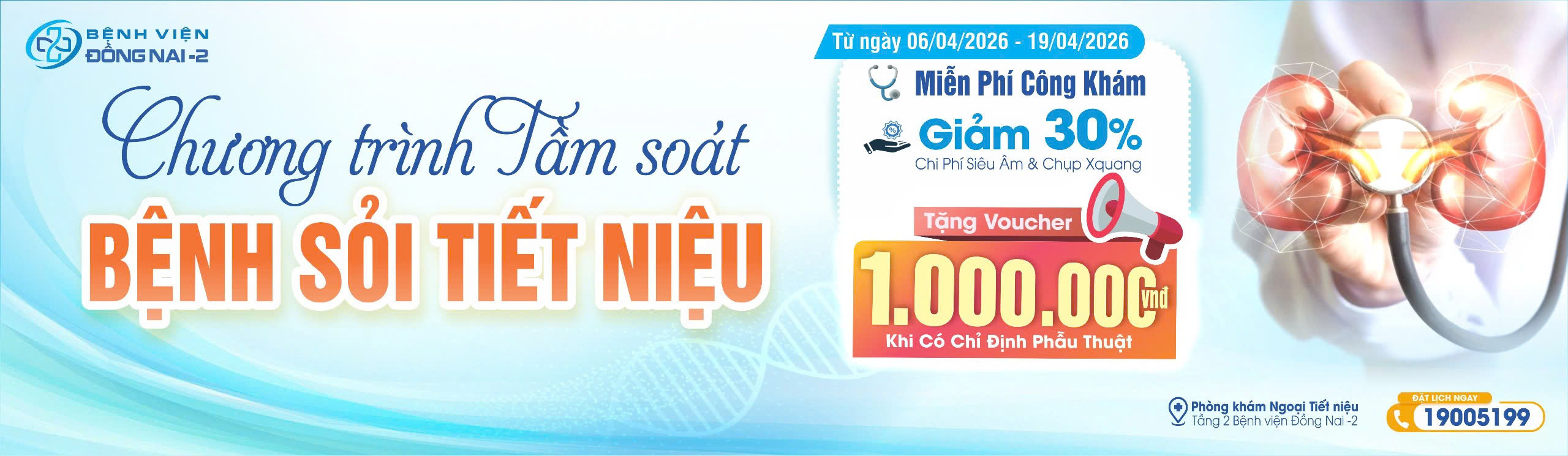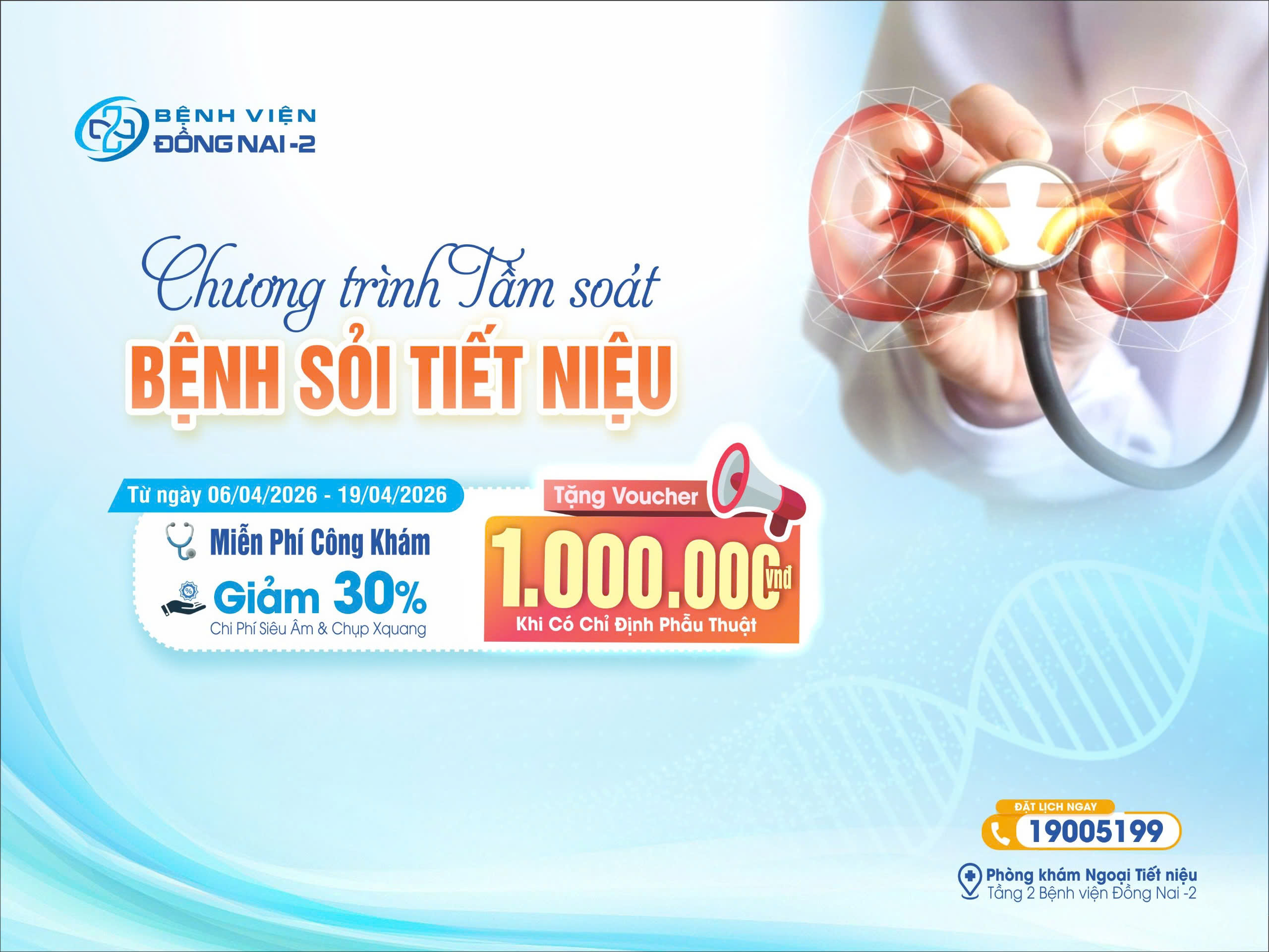 Chương trình tầm soát sỏi tiết niệu tại Bệnh viện Đồng Nai -2 giúp khách hàng phát hiện sớm và điều trị hiệu quả các bệnh lý sỏi với nhiều ưu đãi hấp dẫn. 1. Đối tượng tham gia: Khách hàng có b