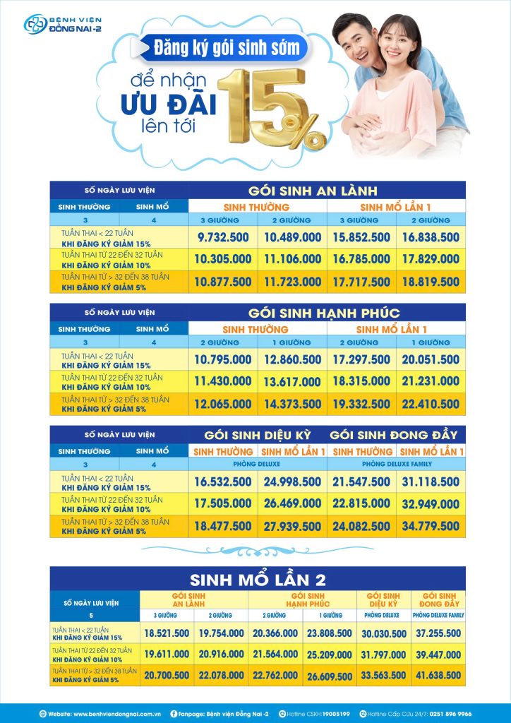 Tại Bệnh viện Đồng Nai -2, mẹ bầu sẽ được chăm sóc toàn diện với các gói sinh trọn vẹn – linh hoạt – tiết kiệm, để mỗi ca sinh là một trải nghiệm ấm áp, hạnh phúc và đầy yêu thương.