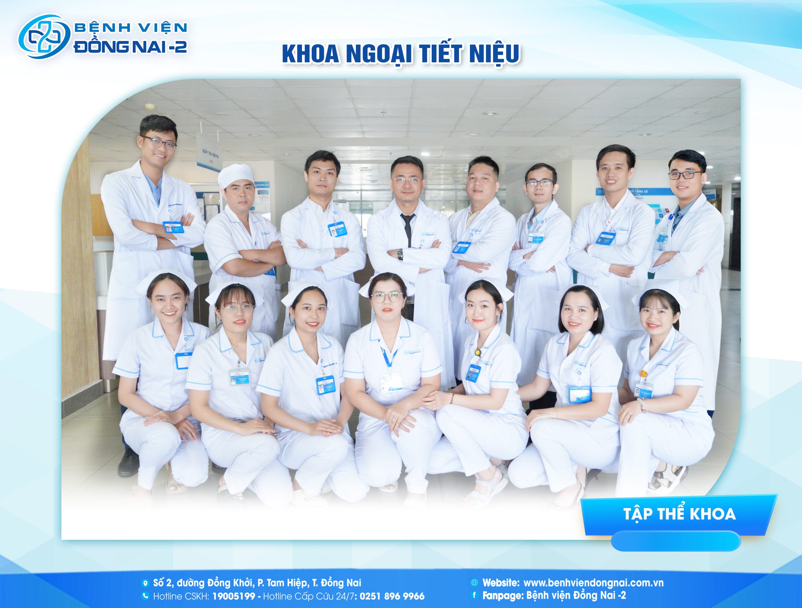 Đội ngũ bác sĩ phân khoa Ngoại tiết niệu giàu kinh nghiệm với tinh thần tận tâm, yêu nghề, làm việc chuyên nghiệp, luôn lấy người bệnh làm trung tâm. Bên cạnh đó, mỗi điều dưỡng tại khoa luôn tận tình, chu đáo, niềm nở chăm sóc sẽ làm dịu nỗi đau, sự căng thẳng vốn có của bệnh nhân cùng bệnh tật. Mọi cố gắng và nỗ lực của tập thể Khoa được ghi nhận từ sự hài lòng, tin tưởng của người bệnh trong quá trình khám và điều trị tại Bệnh viện Đồng Nai -2.