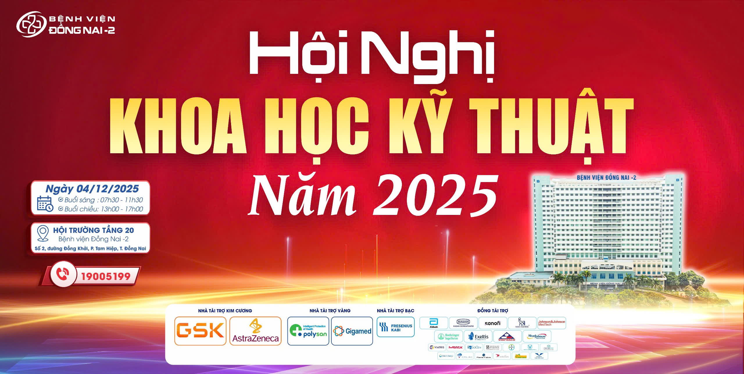 Bệnh viện Đồng Nai -2 trân trọng thông báo về Hội nghị Khoa học Kỹ thuật năm 2025, một sự kiện chuyên môn quan trọng nhằm cập nhật kiến thức mới, giới thiệu các tiến bộ khoa học và chia sẻ kinh nghiệm điều trị từ những Chuyên gia hàng đầu trong nhiều lĩnh vực.