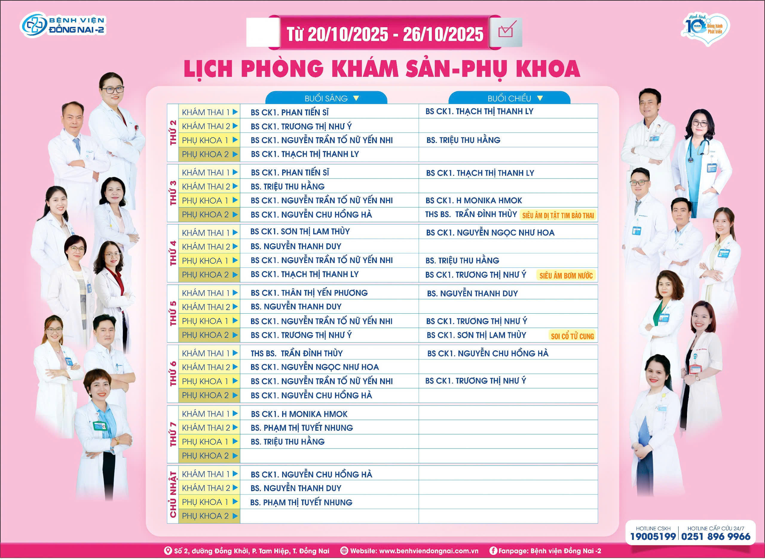 LỊCH PHÒNG KHÁM SẢN PHỤ KHOA TỪ NGÀY 17/11 – 23/11/2025