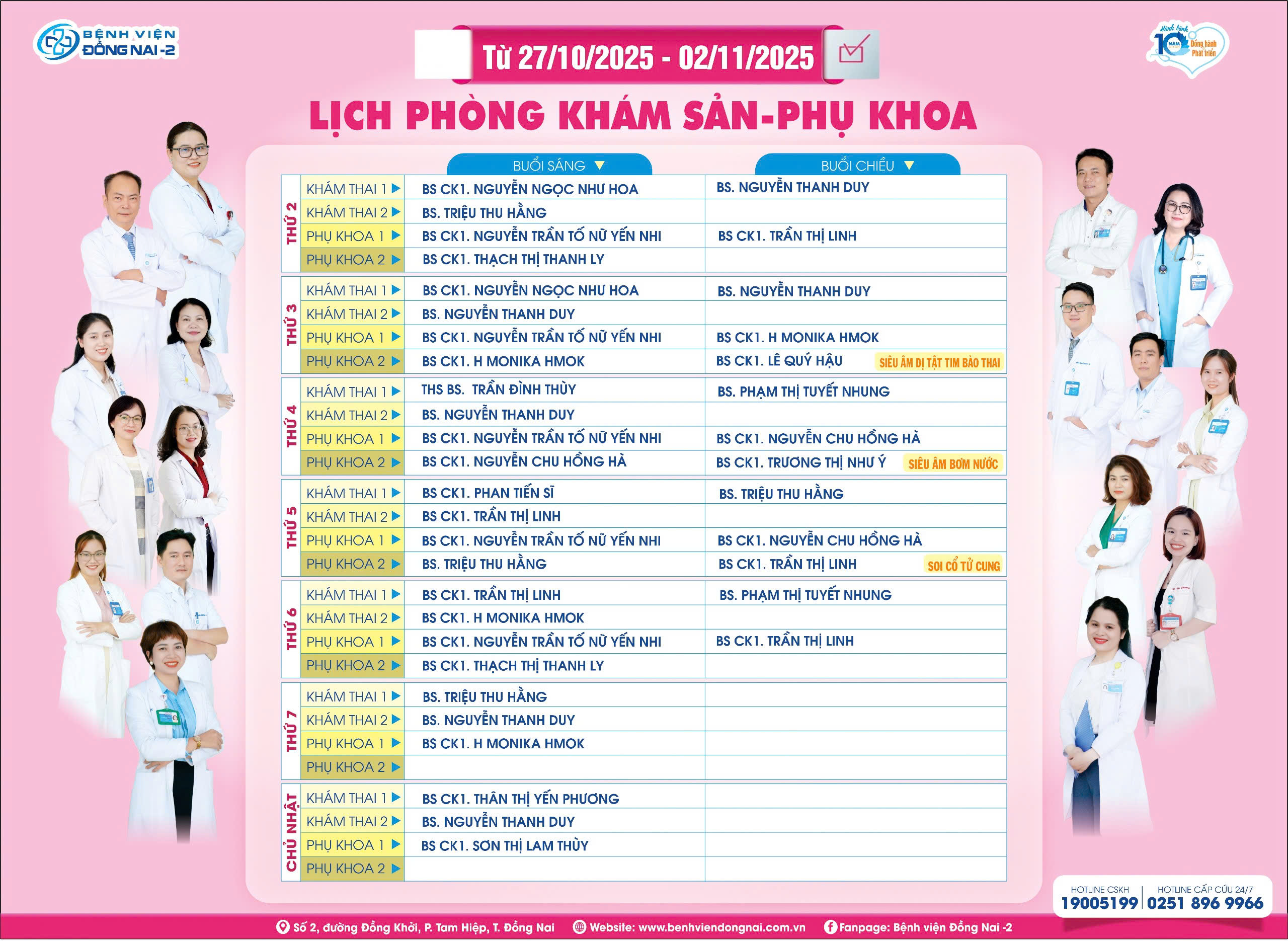 Bệnh viện Đồng Nai -2 xin trân trọng thông báo lịch khám tại Bệnh viện từ ngày 03/11 - 09/11/2025