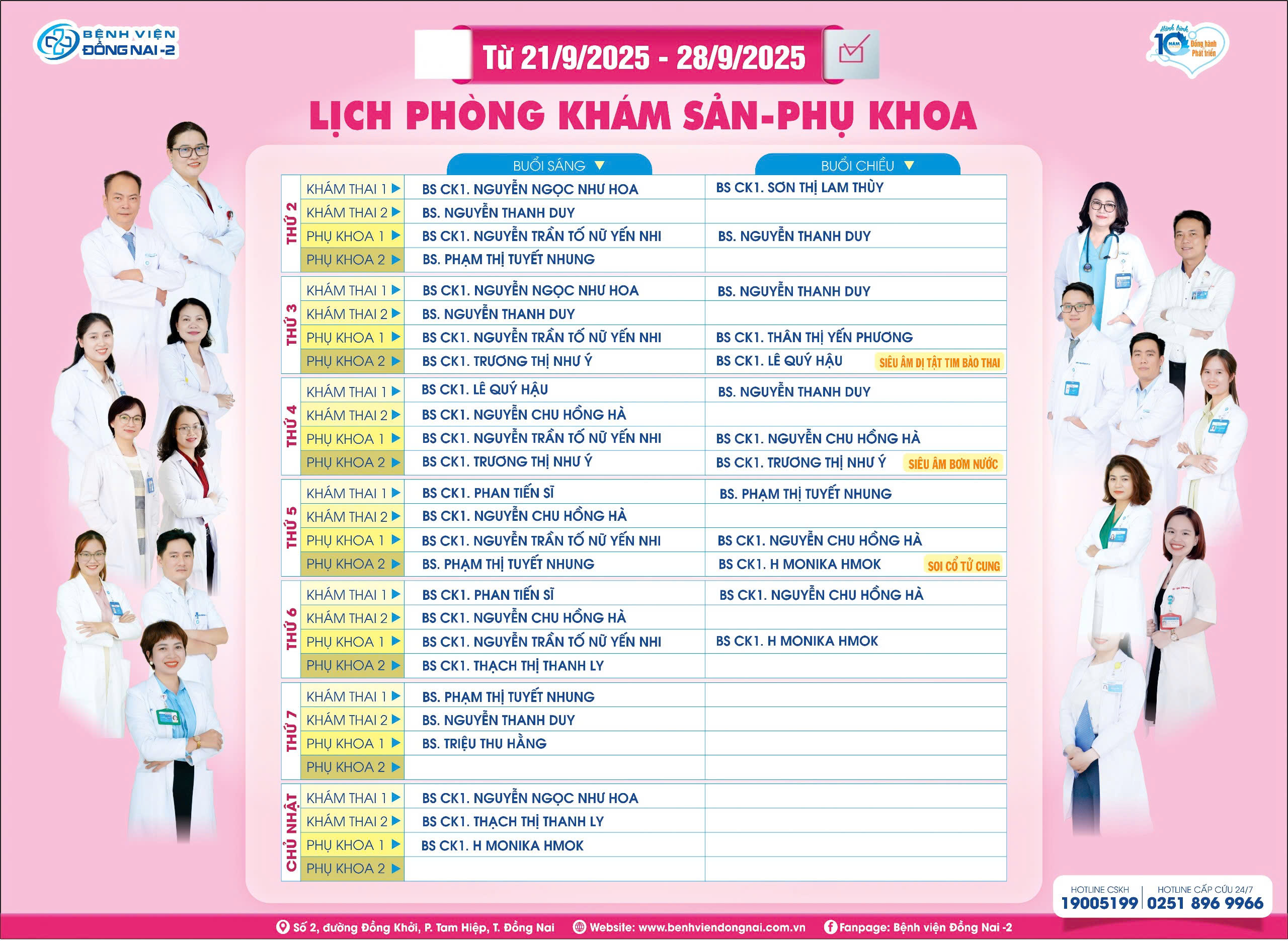 Nhằm thuận tiện cho việc đăng ký khám chữa bệnh tại khoa Phụ sản, Bệnh viện Đồng Nai -2 xin trân trọng thông báo lịch khám tại Bệnh viện từ ngày 29/9/2025 đến ngày 05/10/2025.