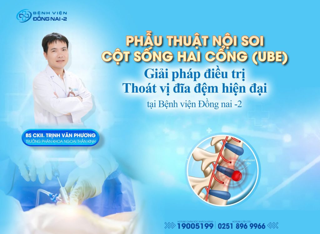 Bệnh viện Đồng Nai -2 vừa thực hiện thành công phẫu thuật nội soi cột sống hai cổng (UBE) điều trị thoát vị đĩa đệm chèn ép rễ thần kinh tọa cho một bệnh nhân nam 35 tuổi. Đáng chú ý, ngay trong ngày đầu tiên sau phẫu thuật, bệnh nhân đã có thể đứng dậy và tập đi lại nhẹ nhàng. Theo thông tin được đăng tải trên CDC Đồng Nai