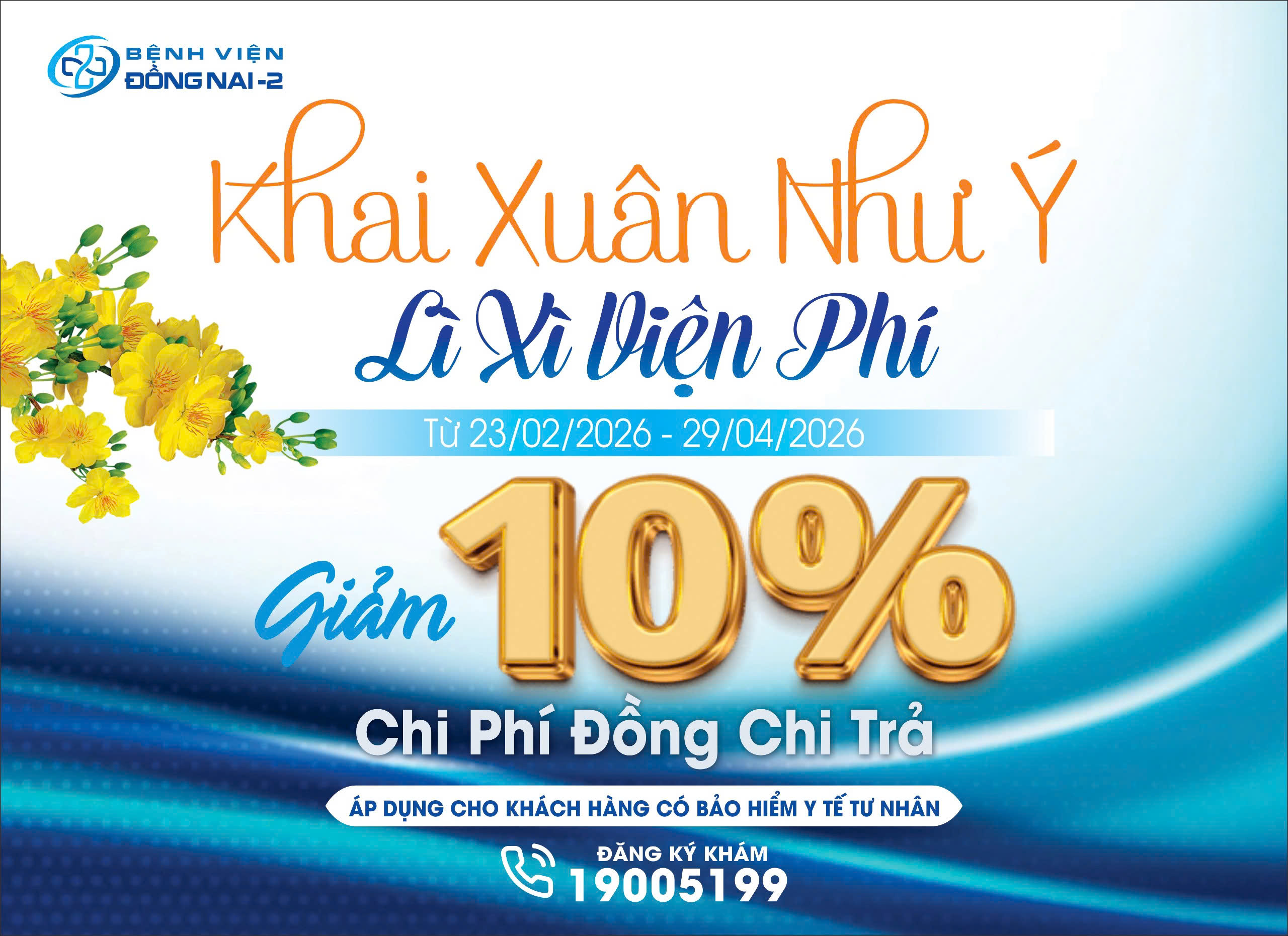 Trong không khí phấn khởi của những ngày đầu năm mới, Bệnh viện Đồng Nai -2 triển khai chương trình ưu đãi đặc biệt dành cho quý khách hàng sử dụng bảo hiểm sức khỏe tư nhân. Đây là món quà "Lì xì v