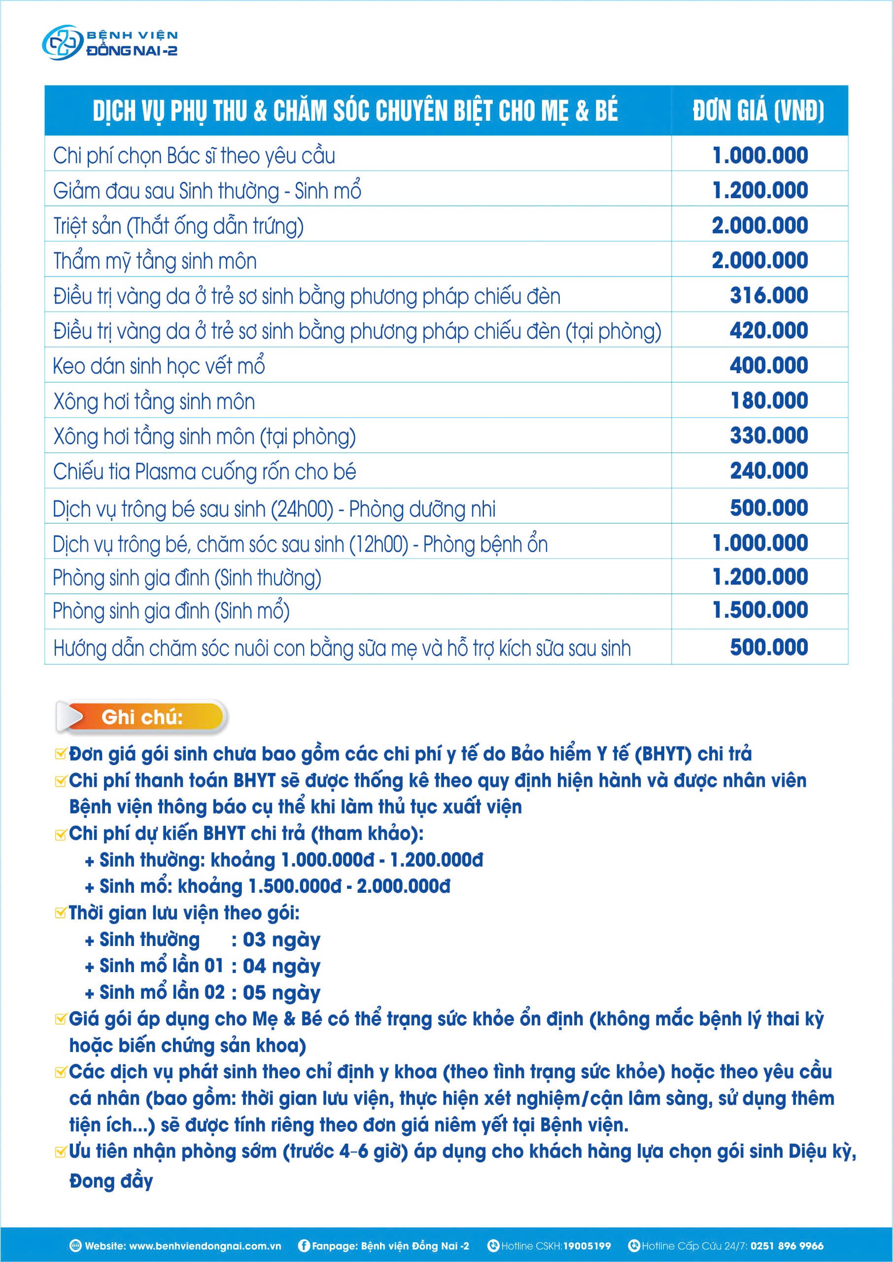 Chi phí gói thai sản trọn gói tại Bệnh viện Đồng Nai -2