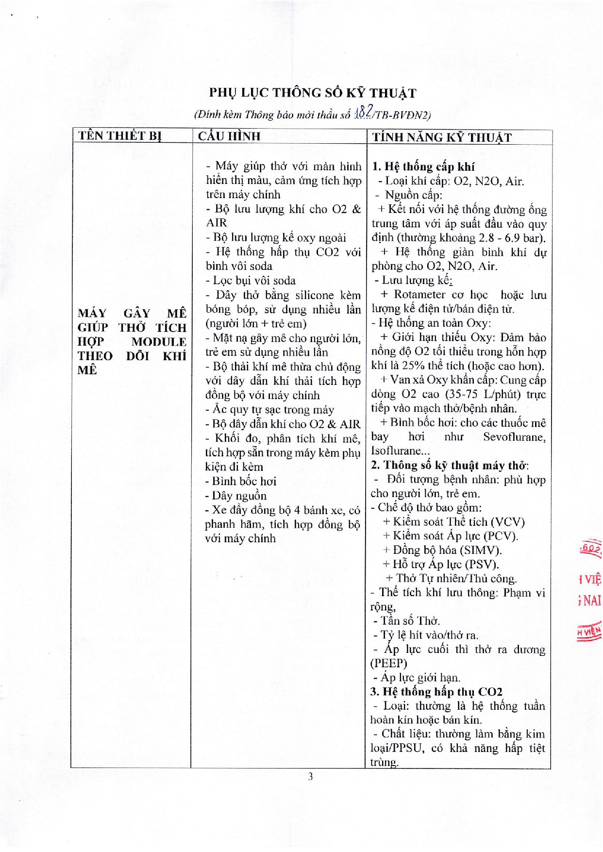 THÔNG BÁO MỜI THẦU CUNG CẤP MÁY GÂY MÊ GIÚP THỞ CÓ MODULE THEO DÕI VÀ MÁY THEO DÕI ĐỘ MÊ SÂU