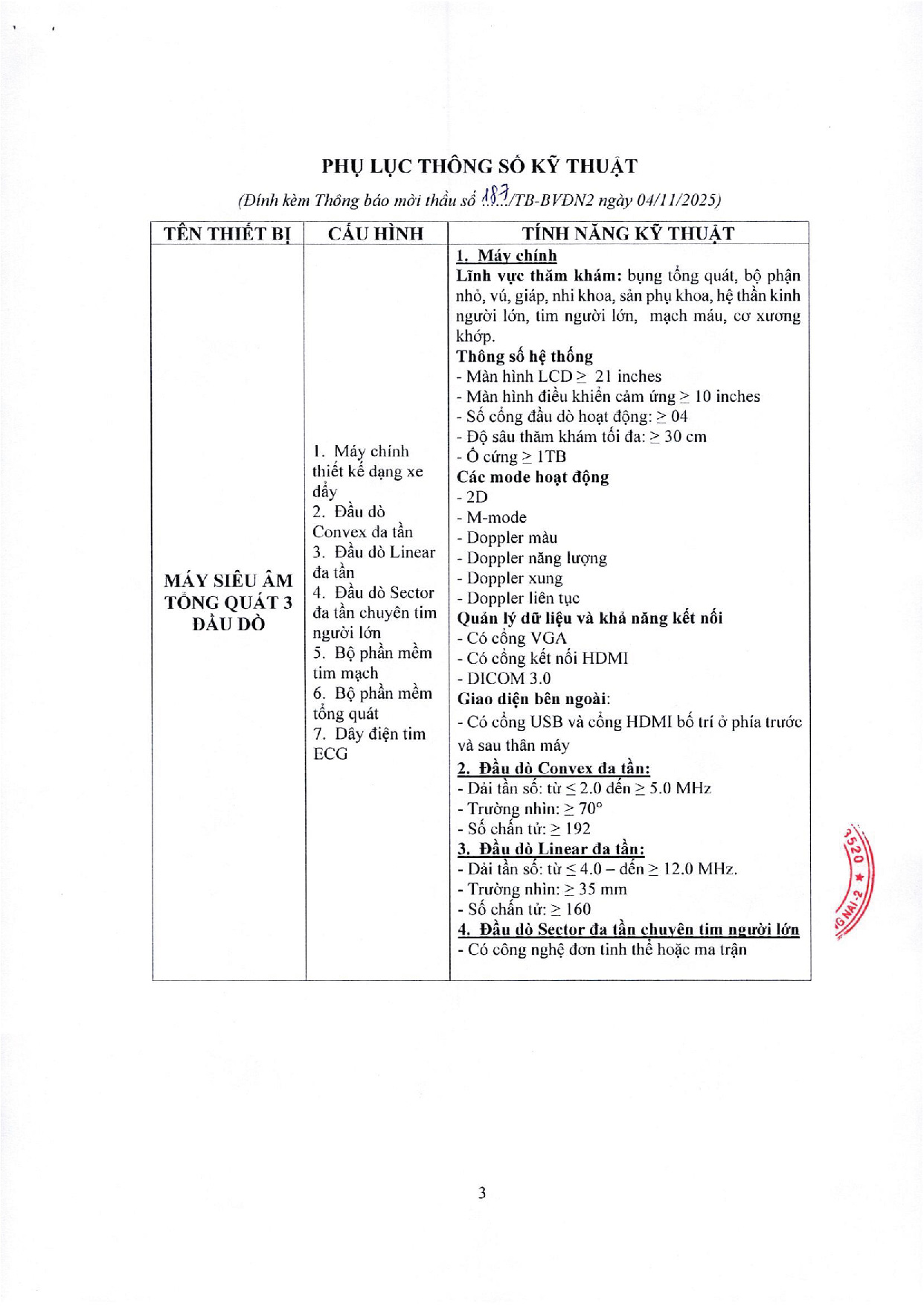 THÔNG BÁO MỜI THẦU CUNG CẤP MÁY SIÊU ÂM TỔNG QUÁT BA ĐẦU DÒ