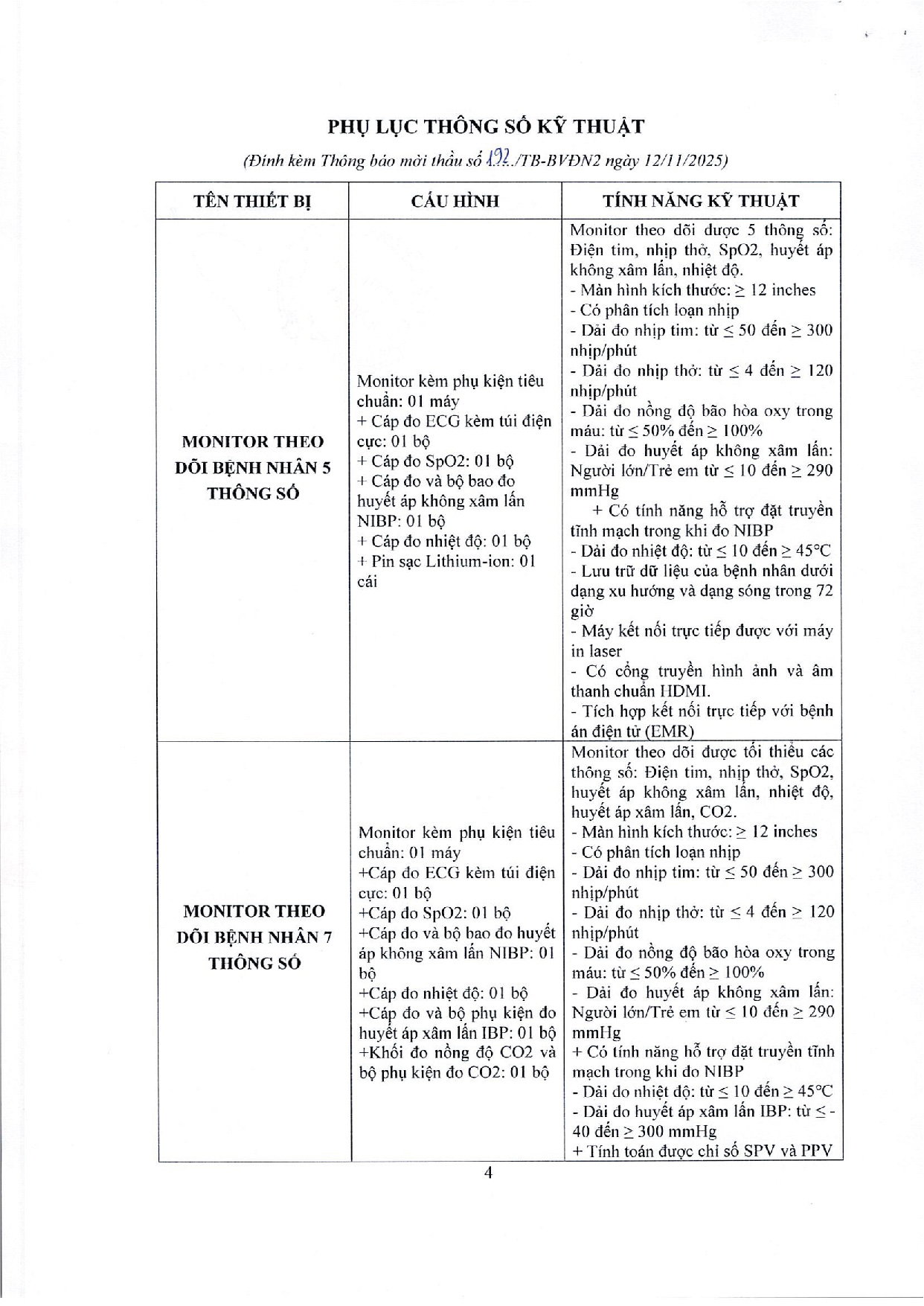 THÔNG BÁO MỜI THẦU CUNG CẤP MONITOR THEO DÕI BỆNH NHÂN