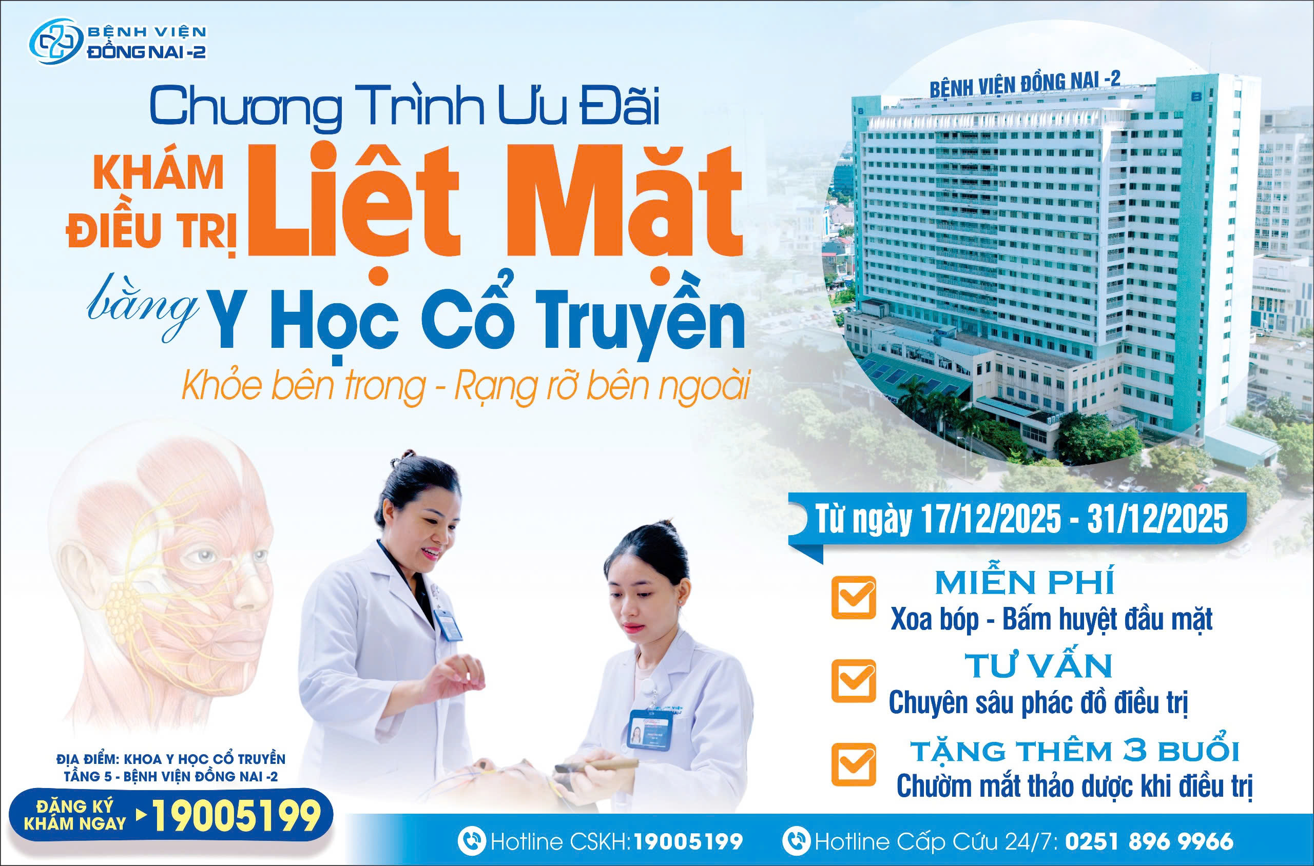 Nhằm hỗ trợ người bệnh được thăm khám và điều trị kịp thời, Bệnh viện Đồng Nai -2 triển khai chương trình ưu đãi với các phương pháp điều trị an toàn, không xâm lấn, kết hợp xoa bóp – bấm huy